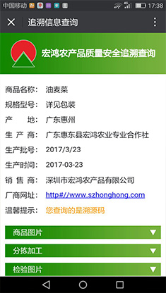 Through the management platform of traceability system, we can establish perfect and rich agricultural product files. The production environment, production process and testing information are displayed in front of consumers in a comprehensive and intuitive way, which increases the transparency of all links of agricultural products from the field to the table, and establishes a trustworthy guarantee system. Taking the vegetable traceability process as an example, consumers can query the information of all circulation links from the base planting to the table.